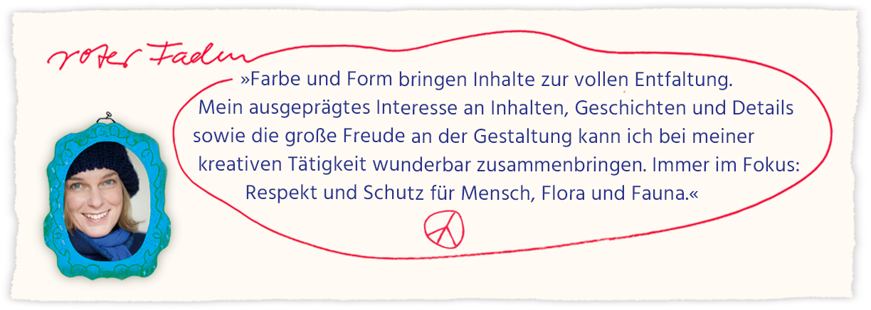 Meine Illustrationen sind mit Gouachefarbe und Kreiden gemalte Bilder, Zeichnungen und Collagen, die ich mit Typografie, Fotografie und Grafiken zu einer Gesamtgestaltung vorwiegend digital zusammenführe. Sehr gerne entwickle und gestalte ich Projekte von der ersten Idee bis zur Druckvorlage oder andere Präsentationsformen.